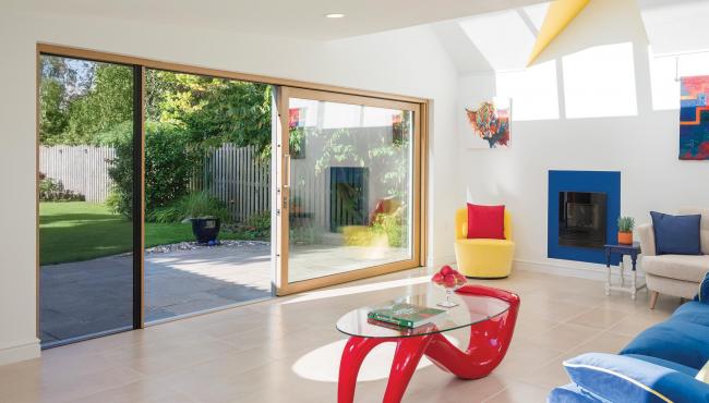 Con su panel de vidrio fijo sin marco, el diseño contemporáneo de la Puerta Corredera Integrada Centor 211 asegura que el foco de atención esté siempre en las vistas al exterior.